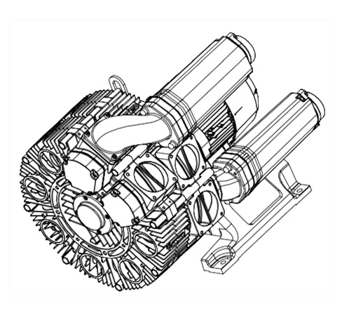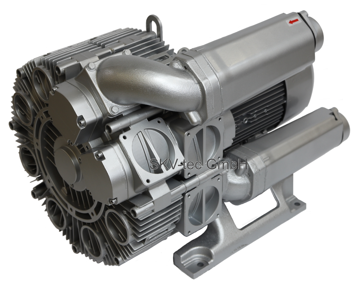 2 stufiger Hochdruck-Seitenkanalverdichter mit folgenden technischen Spezifikationen bei 50 Hz: