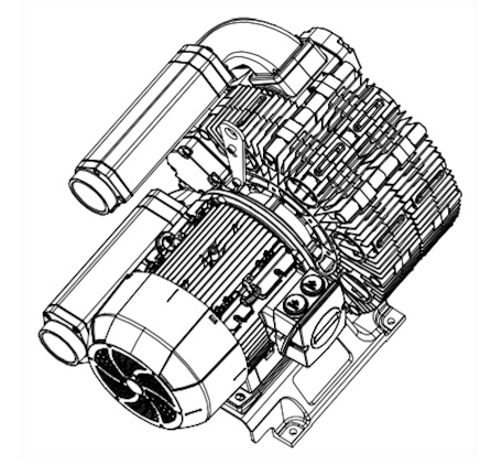 2 stufiger Hochdruck-Seitenkanalverdichter mit folgenden technischen Spezifikationen bei 50 Hz: