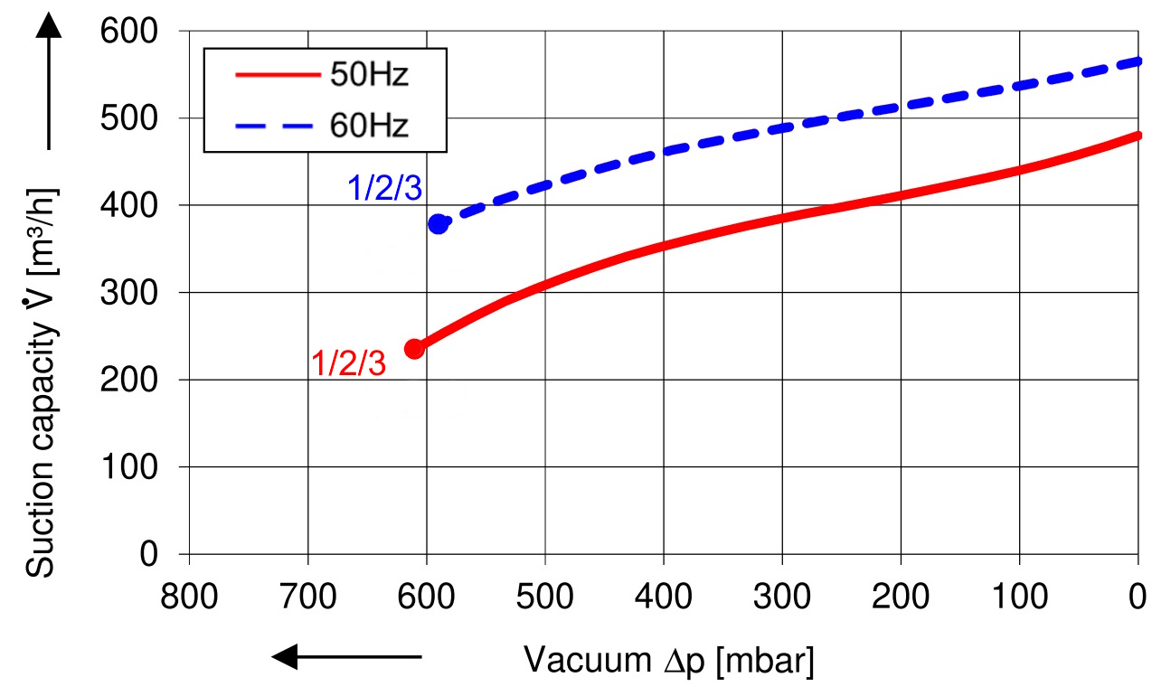 3 stufiger Hochdruck-Seitenkanalverdichter mit folgenden technischen Spezifikationen bei 50 Hz: