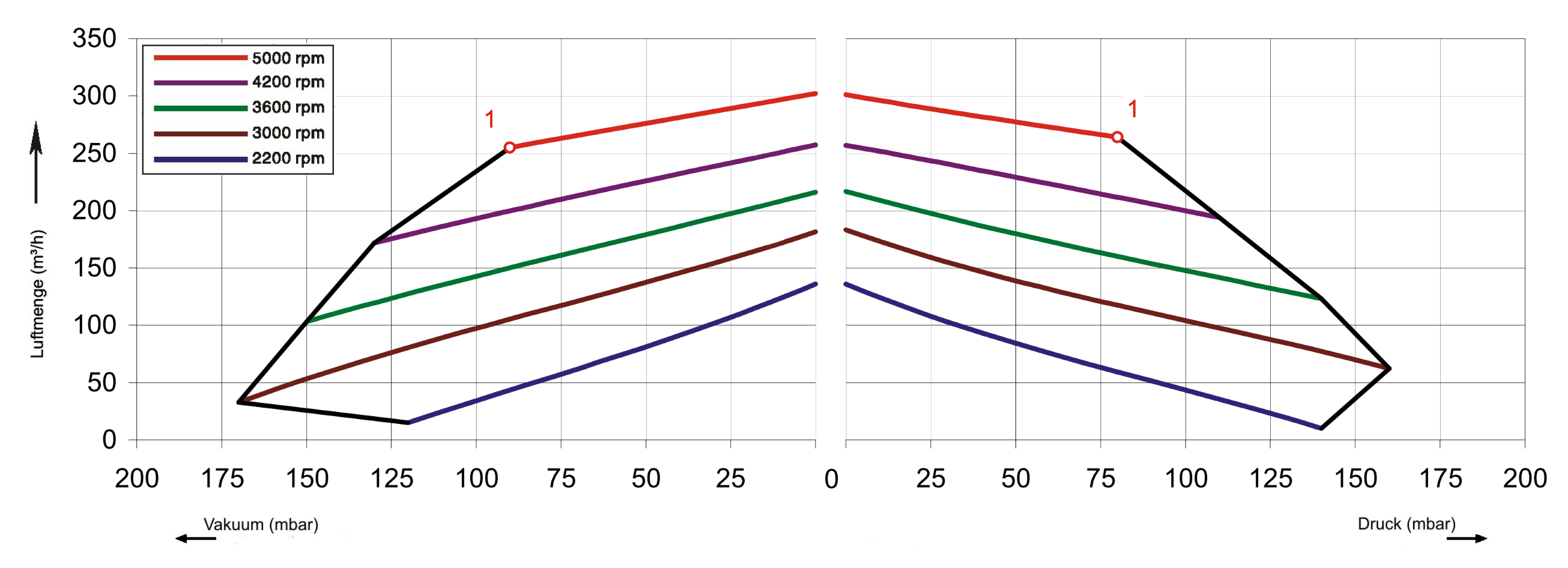 1 stufiger Seitenkanalverdichter mit folgenden technischen Spezifikationen bei 50 Hz: