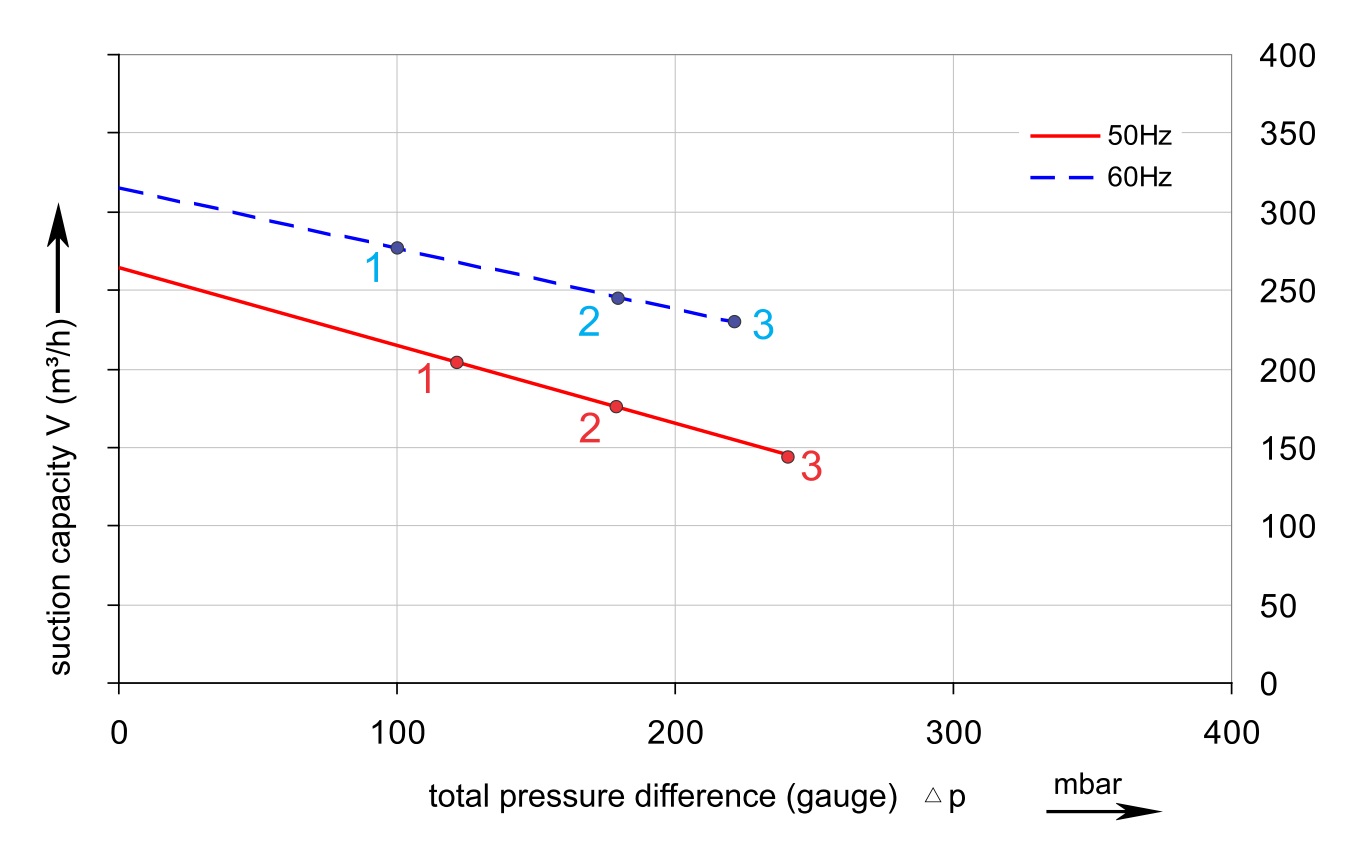 1 stufiger Seitenkanalverdichter mit folgenden technischen Spezifikationen bei 50 Hz:
