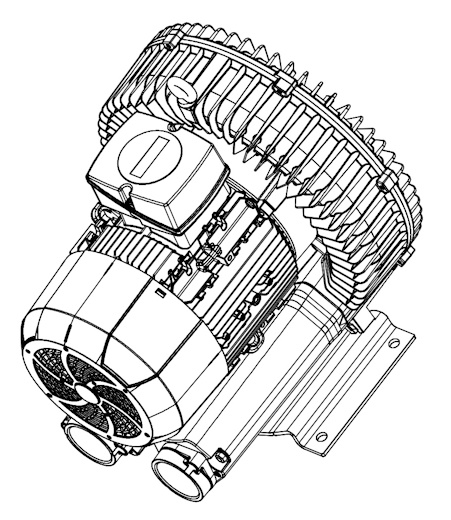 1 stufiger Seitenkanalverdichter mit folgenden technischen Spezifikationen bei 50 Hz: